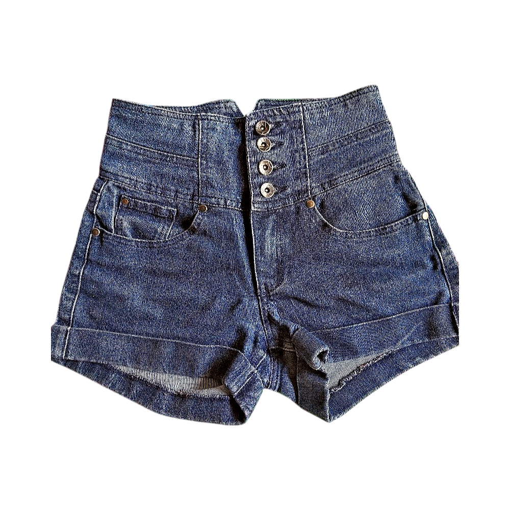 Korkea vyötärö. Nappi ja vetoketju kiinnitys. Taskut edessä ja takana. Kangas joustaa vähän.