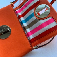 Pari kertaa käytetty neonoranssi Kate Spaden Sally Newbury Lane Valencia crossbody-laukku kullanvärisillä metalliosilla.