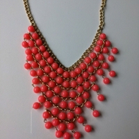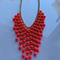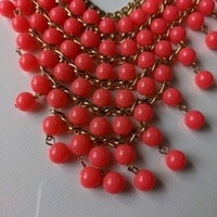 Kullanvärisellä ketjulla ja neonpinkeillä helmillä statement-kaulakoru.