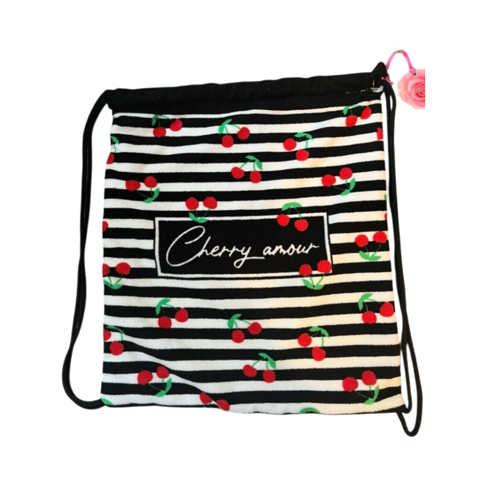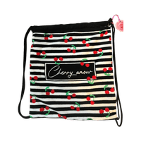 Kevyt kankaainen käärittävä reppu, kirsikkakuosi.