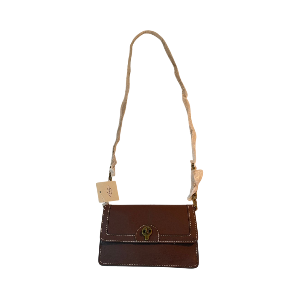 Täysin uusi, laput kiinni Fossil Ainsley olkalaukku, väri ruskea. Tuotenumero: ZZO2HM165-O00. Viimeinen kuva on otettu netistä, kyseessä on sama lakku, ja siitä näkee miltä ketju näyttää!