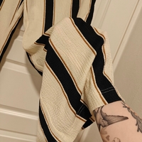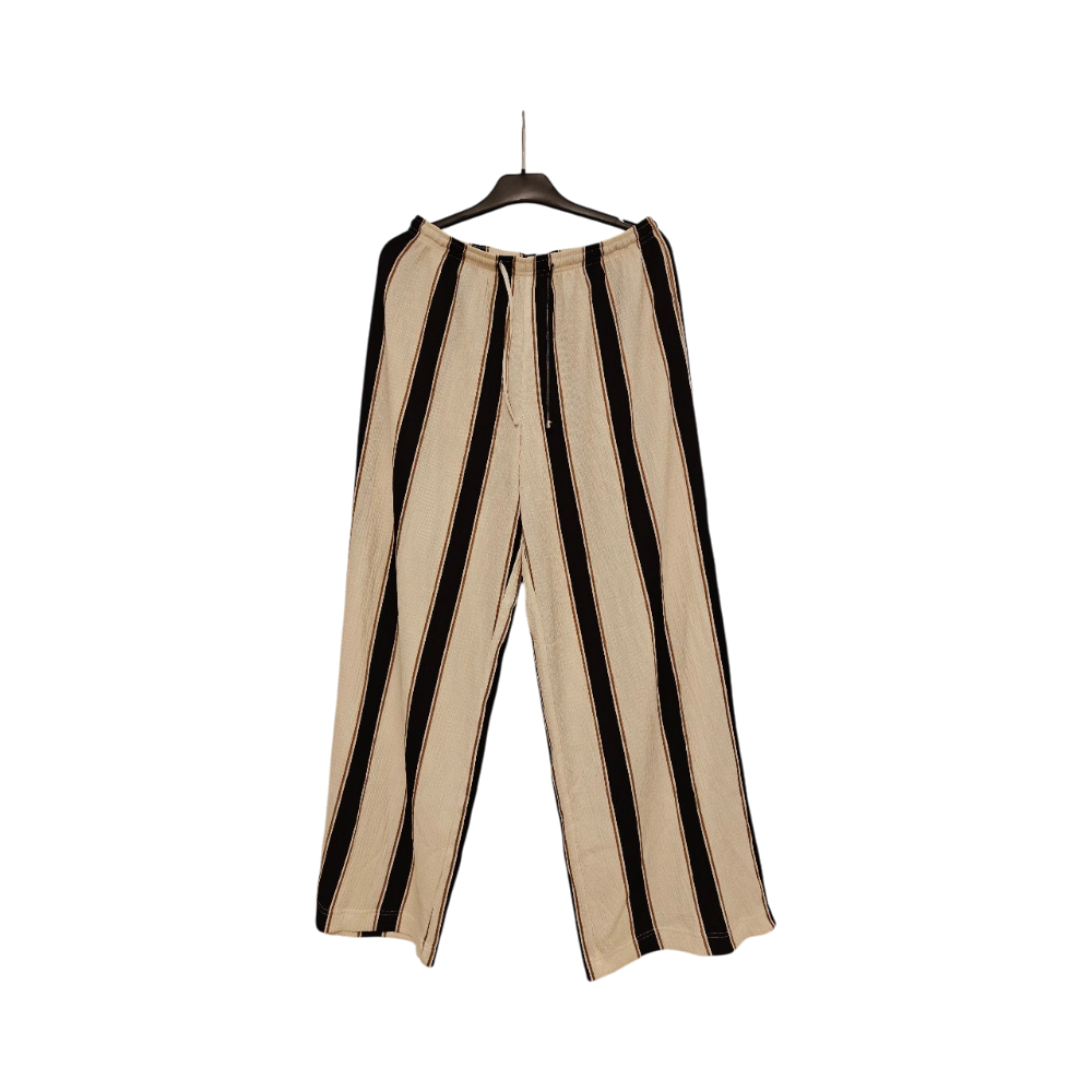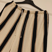 Kevyet raidalliset "pull on" -housut. Korkea säätönyörillinen joustovyötärö & leveät lahkeet. Joustavat hyvin.