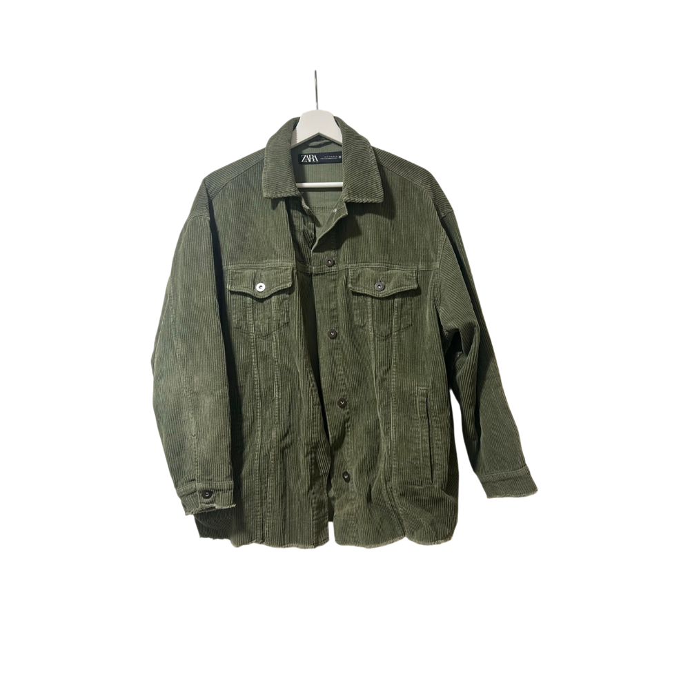 Oversize corduroy-takki, napit edessä ja rintataskut.