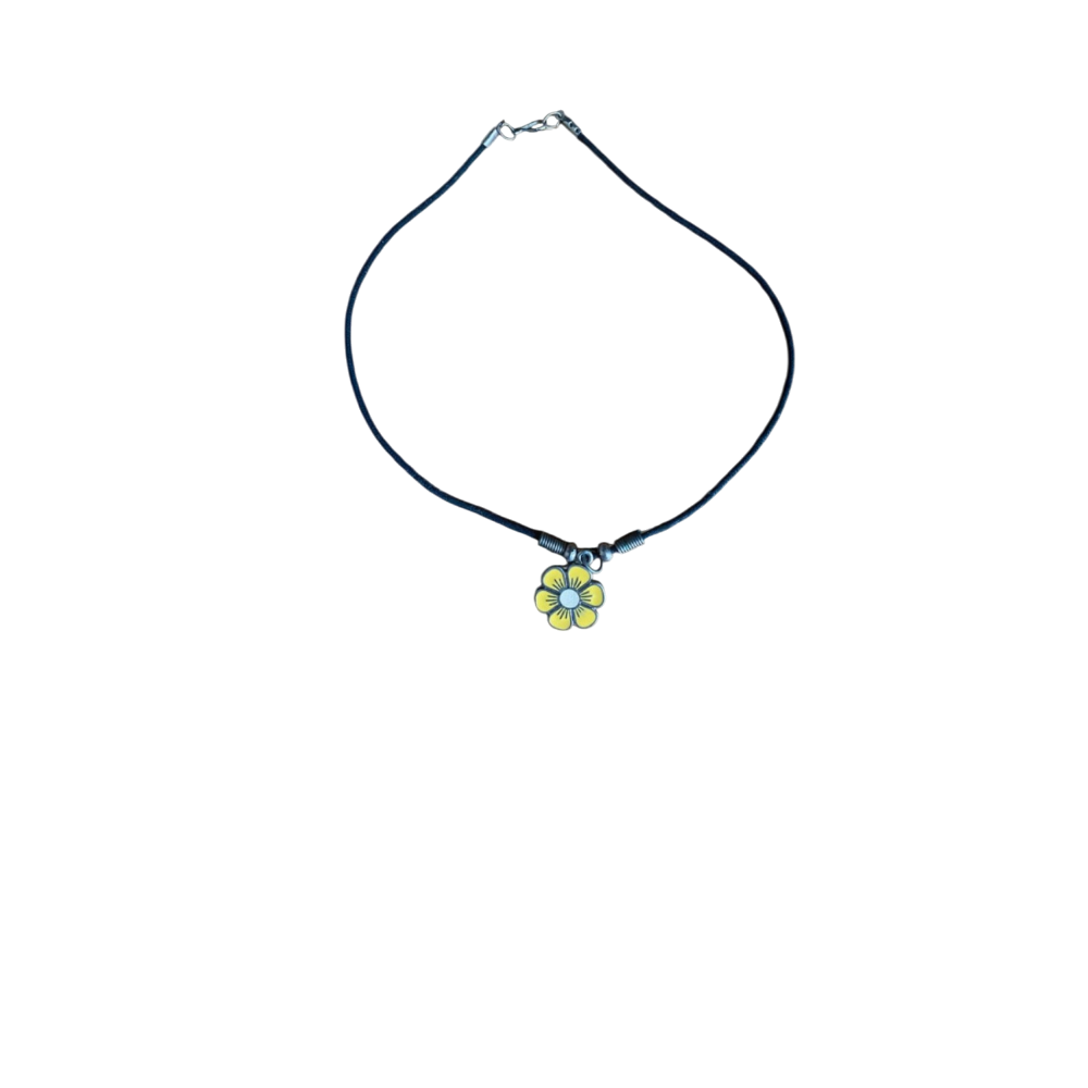 Musta nauhakaulakoru keltaisella kukkariipuksella