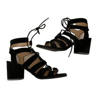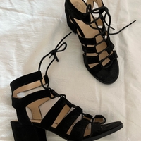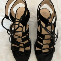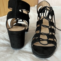 Musta avokärkiset mokkanahkaiset korolliset sandaalit