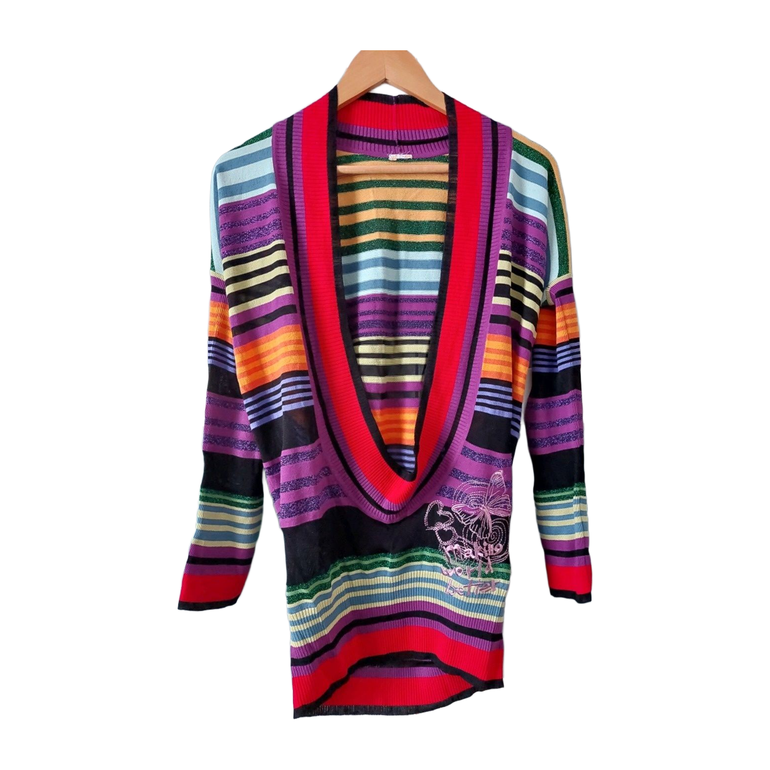 Desigual värikäs pitkä pusero suurella kaula-aukolla