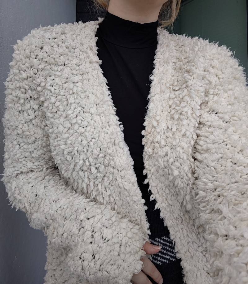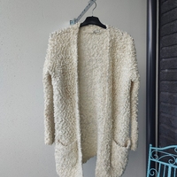 Valkoinen pitkä pörröneule Cubukselta koossa XS/34. Ei kiinnitystä, taskut. Itselle jäänyt pieneksi, siisti kunto. 🤍