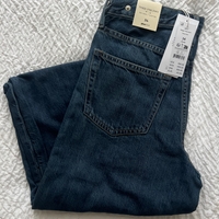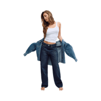 Baggy-malliset farkut, leveät lahkeet, korkea vyötärö.
