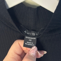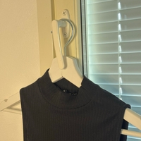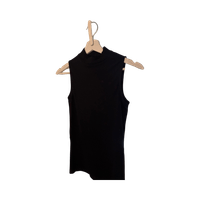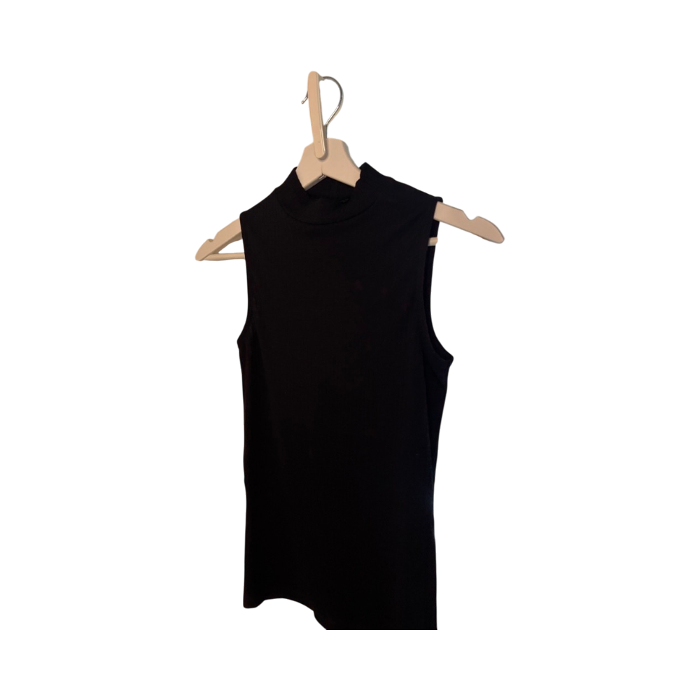 Musta, hihaton ribbineuletoppi, korkea kaulus. Hyväkuntoinen🖤