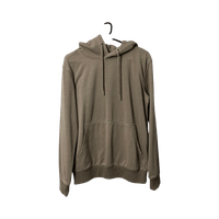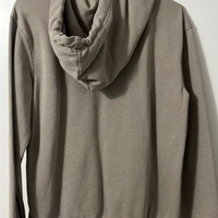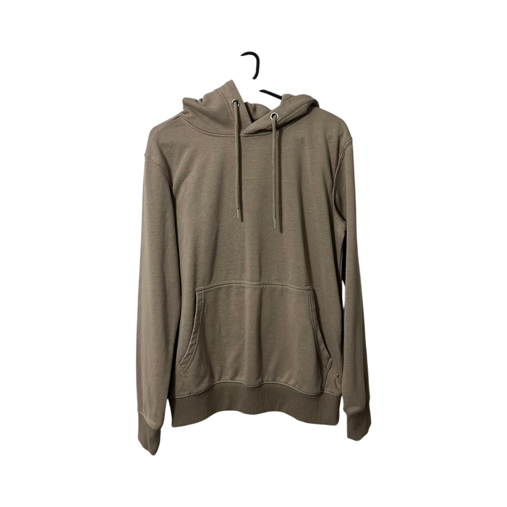 Beige, pehmeä huppari vetoketjuttomalla taskulla.