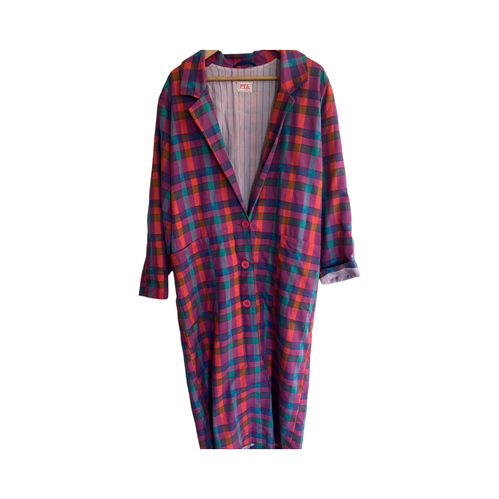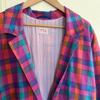 Suomessa valmistettu PTA takki, ihanat kirkkaat värit. Koko 36, mutta menee helposti myös m koossa. Pituus 129cm ja kai kai mitta 57cm. Oikein siistissä kunnossa