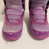 Used lightly (up to approx. 15 times). Inner liners and outsoles are in very good condition. There is visible wear on the toe area, and one side quick-lace attachment has come loose from the boot shell, however it still works and does not affect functionality (see photos).