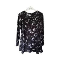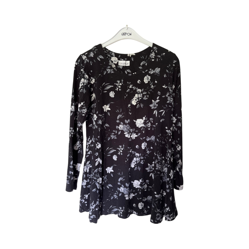 Pitkähihaista tunikaa vaalealla kukkakuviolla, hyväkuntoinen