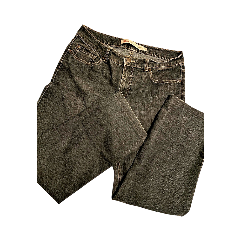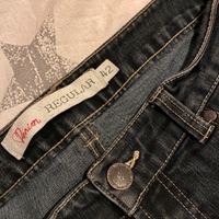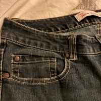 Käytetyt, hyvässä kunnossa siniset farkut.