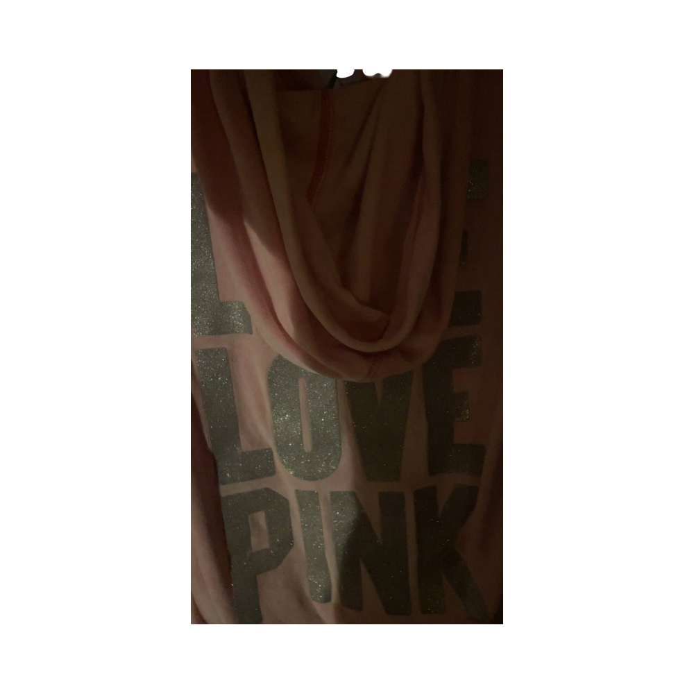 Soft pink hoodie with large glitter 'LOVE LOVE PINK' logo. Size s but fits s-m. Print is cracked a little, but also i bought it for 60 in u.s.a.