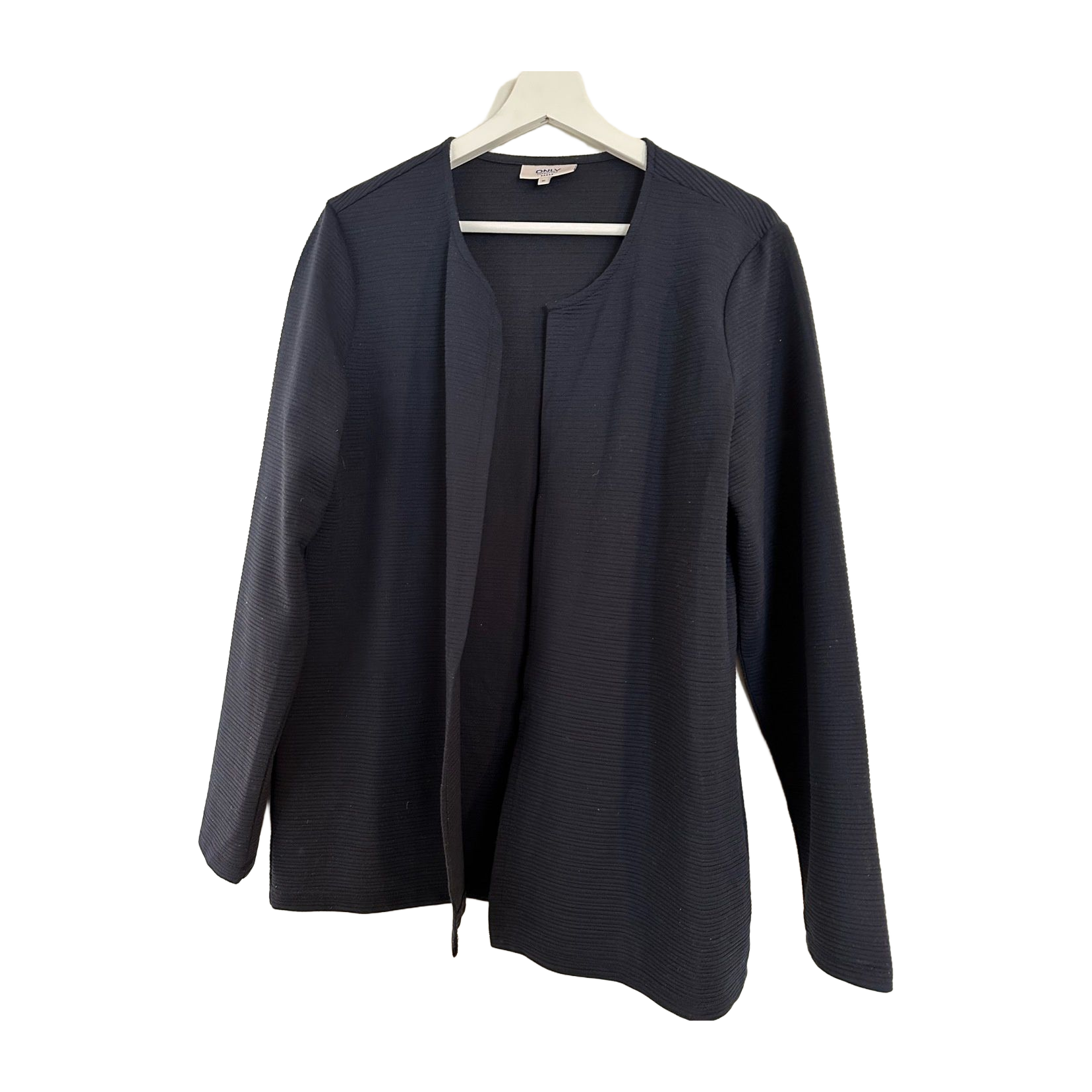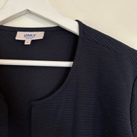 Only Carmakoman tummansininen jakku. Only Carmakoma plus-malliston koko M, mutta vastaa mielestäni kokoa 44.