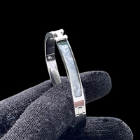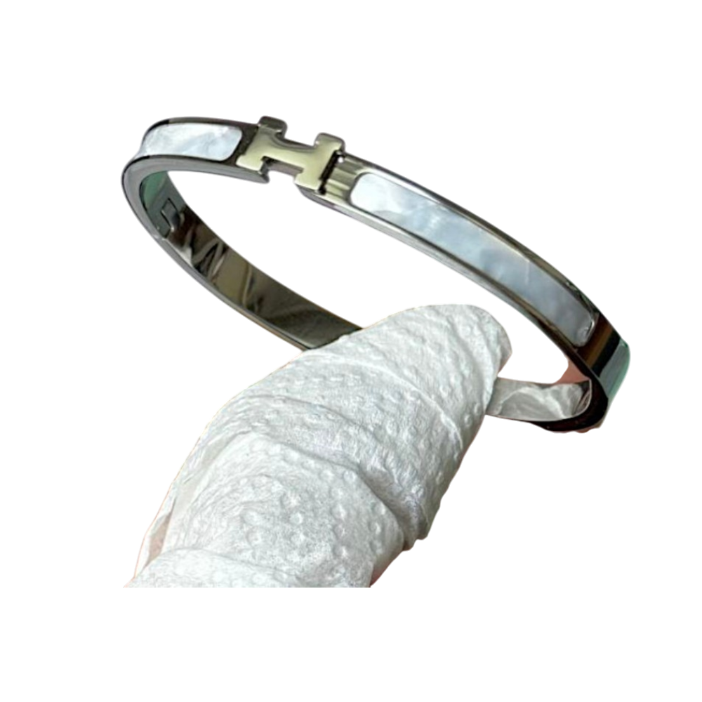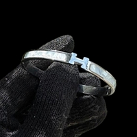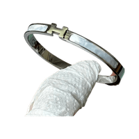 Slim silver bangle with white enamel and H clasp detail.size-18cm
