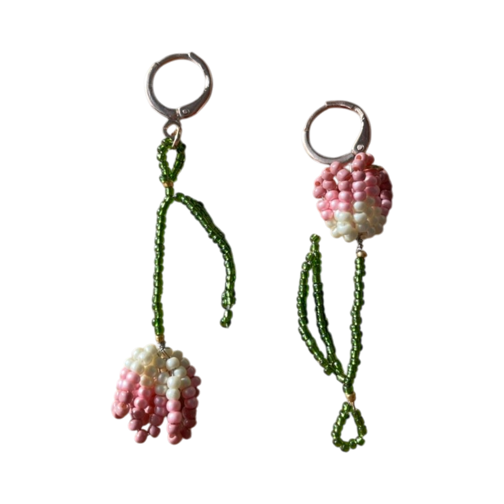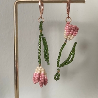 Käsintehdyt helmistä punotut tulppaanikorvakorut🌷Renkaiden halkaisija 10mm