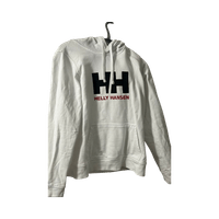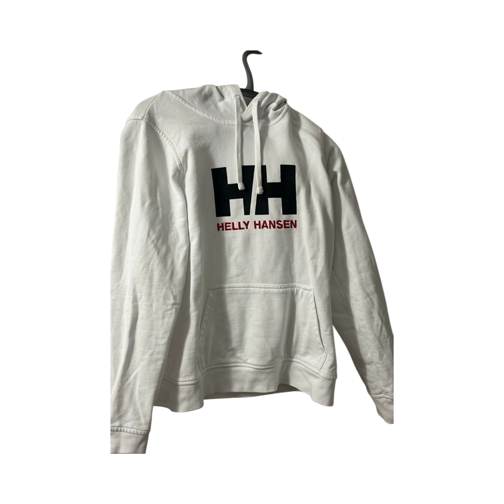 Valkoinen Helly Hansen -huppari, etutasku ja huppu, koko M.