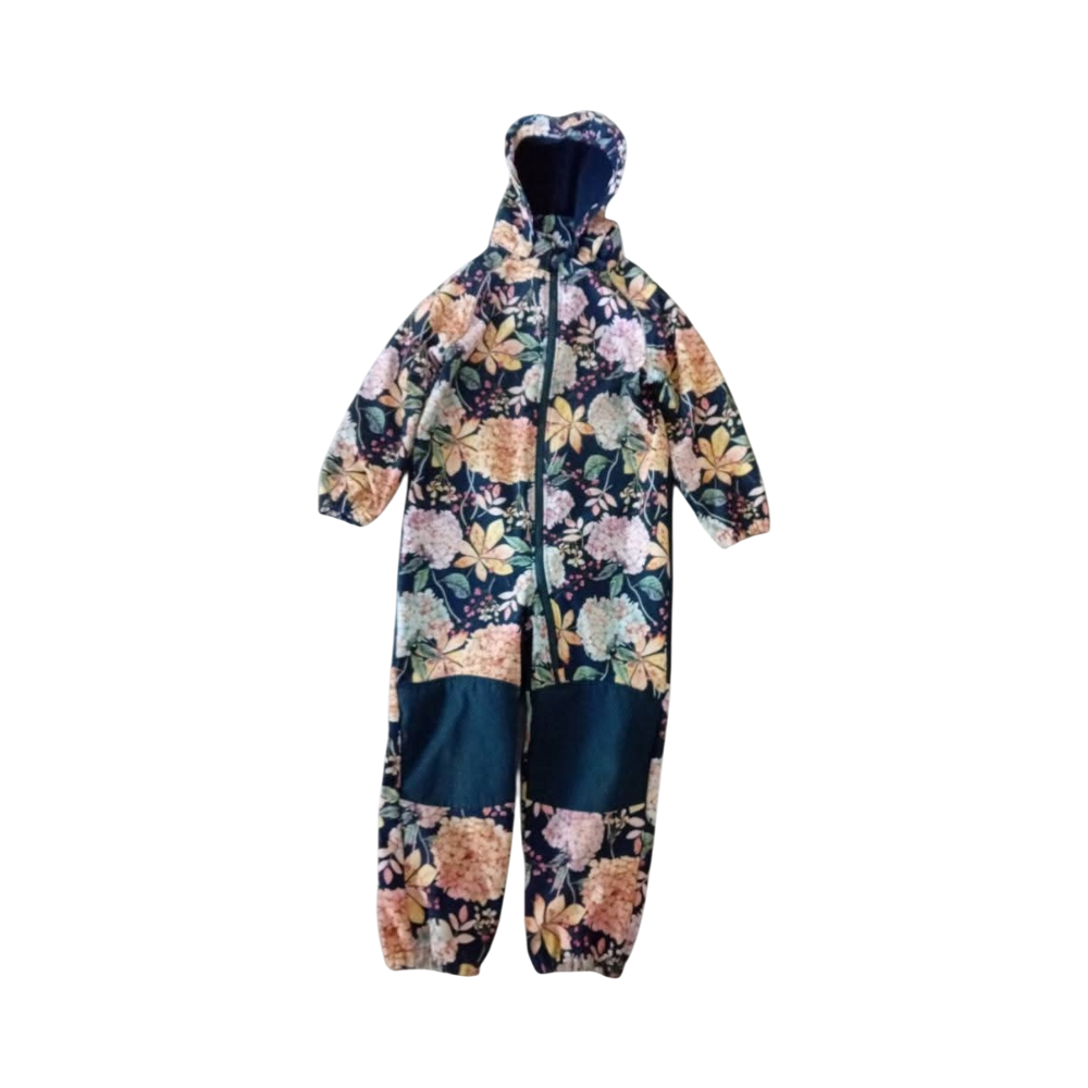 Name It kukallinen softshell-haalari. Fleecevuori. Irrotettava, hyvin muotoiltu huppu. Vahvikkeet polvissa ja pepussa. Jalkalenkit. Koko 116cm, reilua kokoa. Moitteeton kunto.