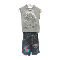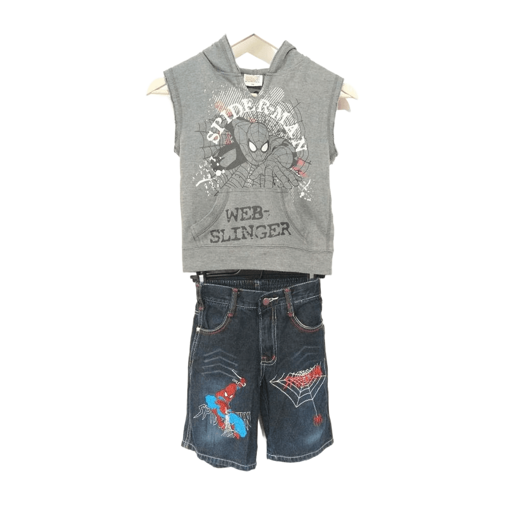 Setti jossa on farkkushortsit ja hihaton huppari. Mielestäni reiluhko koko. Shortseissa ei merkkitietoa. Ovat eri merkkiä mutta sopii yhteen hupparin kanssa.