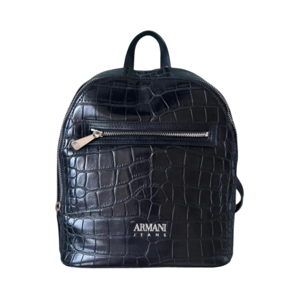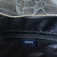 Armanin musta reppu. Muuten hyvässä kunnossa, mutta olkaimmissa pientä purkaumaa ja logon vieressä pieni kuluma (kuvissa)