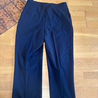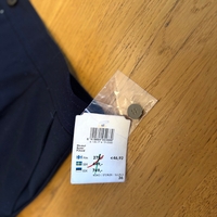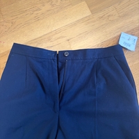 Täysin käyttämättömät, siistit mustat housut – laput yhä kiinni.