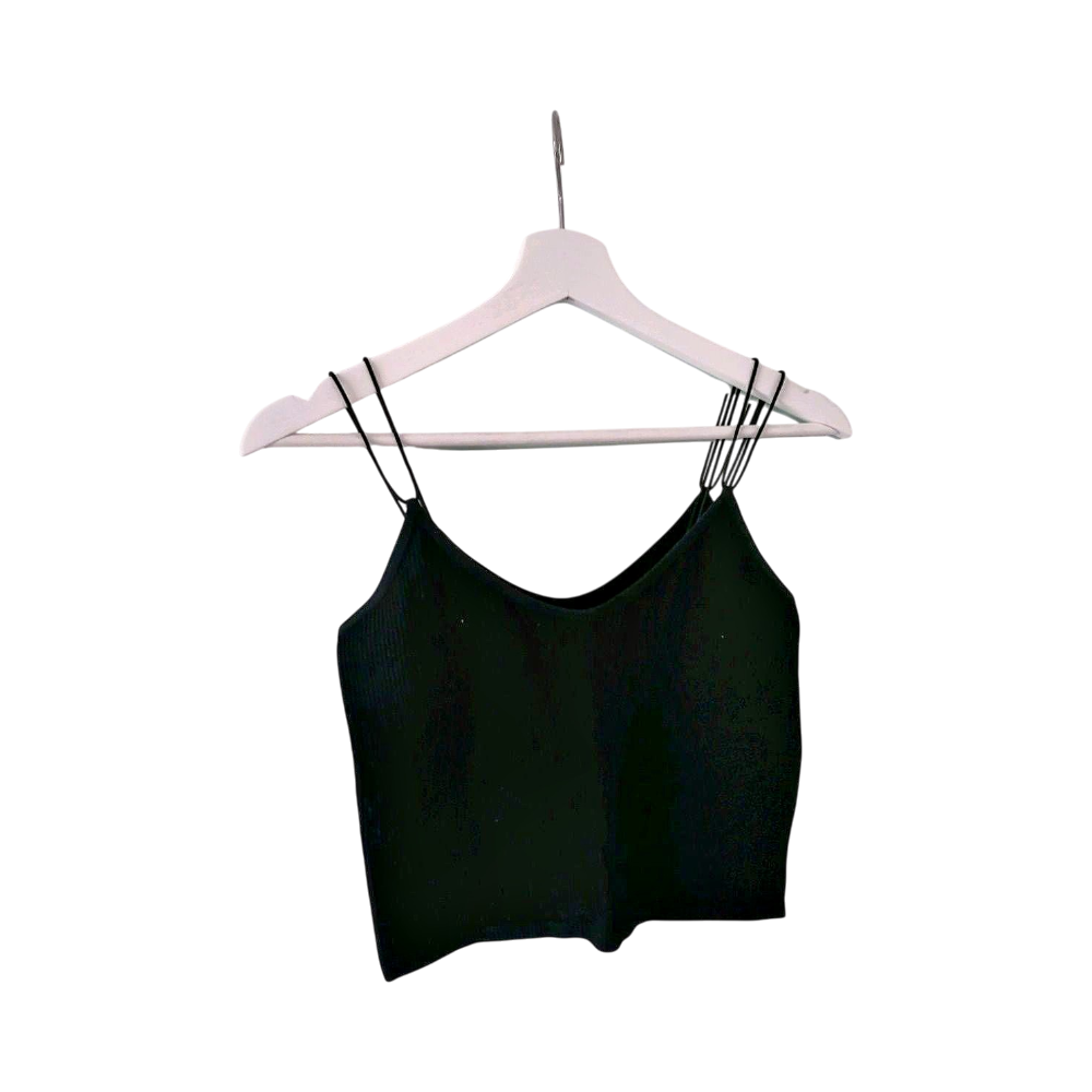 Musta zaran toppi. Ribattua materiaalia. Koko M-L.