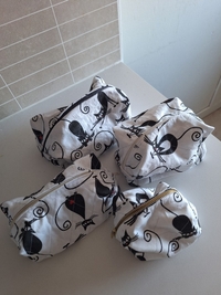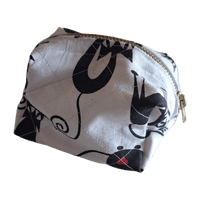 Söpö ja käytännöllinen pussukka kissakuviolla. Käsinommeltu 100% kierrätysmateriaaleista 😻