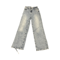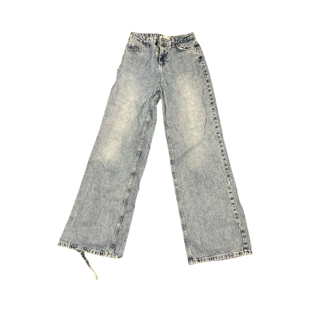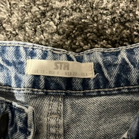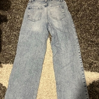 Suorat vaaleansiniset farkut. Muuten hyväkuntoiset mitta lahkeessa pieni kuluma.