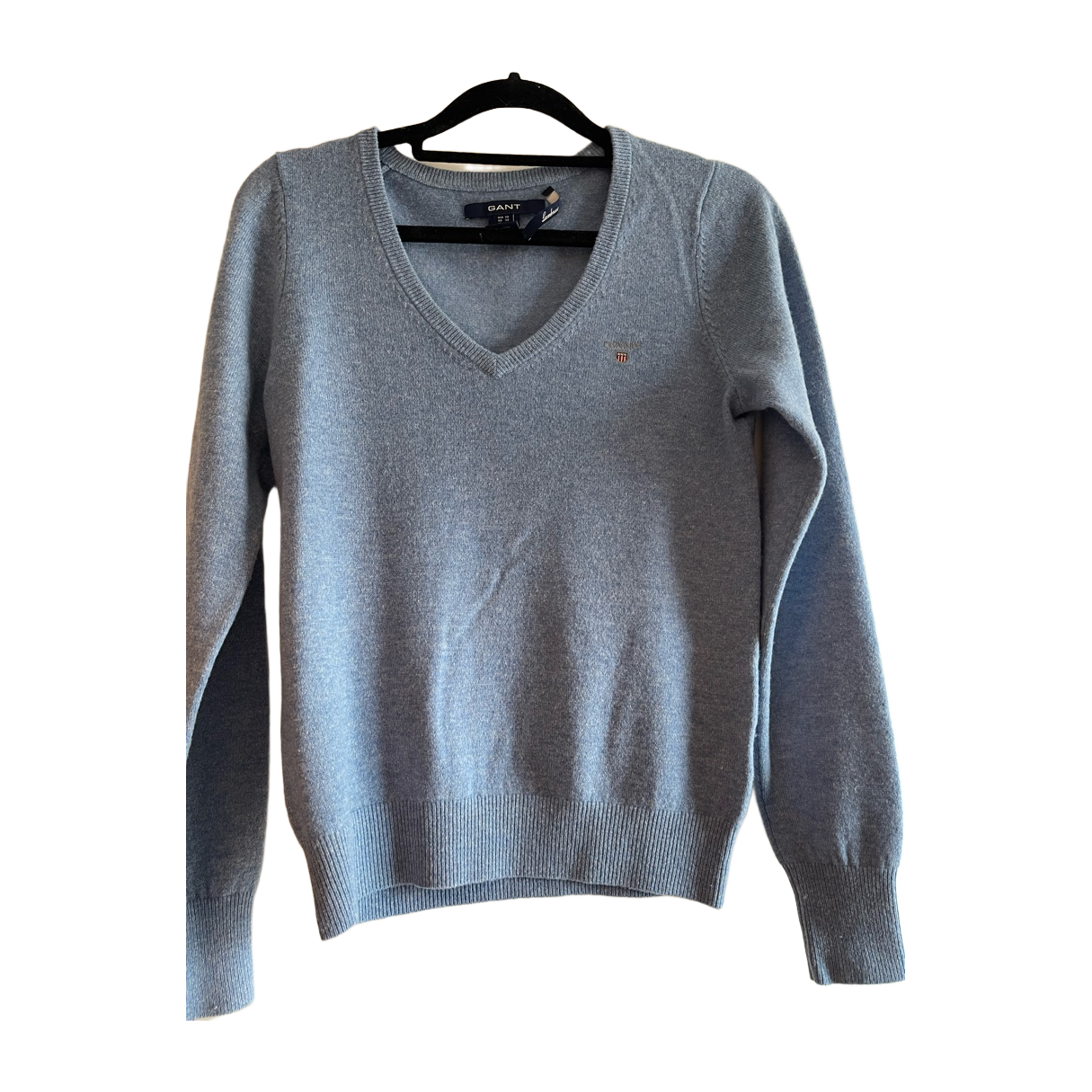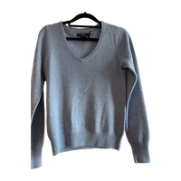 Soft light blue v-neck sweater, size XS, classic style.