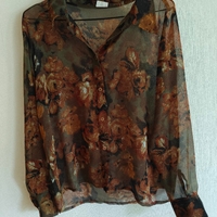 Läpikuultava, kukkakuosinen pitkähihainen pusero