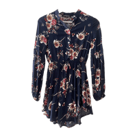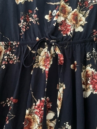 Naisellinen kukkakuvioinen puseromekko, vyötärönauhalla