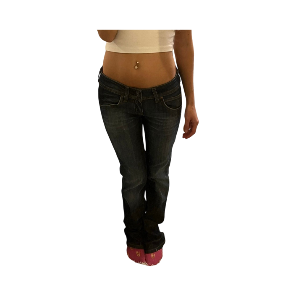 Bootcut-farkut, matala vyötärö, käytetyn näköinen pesu.