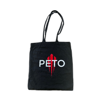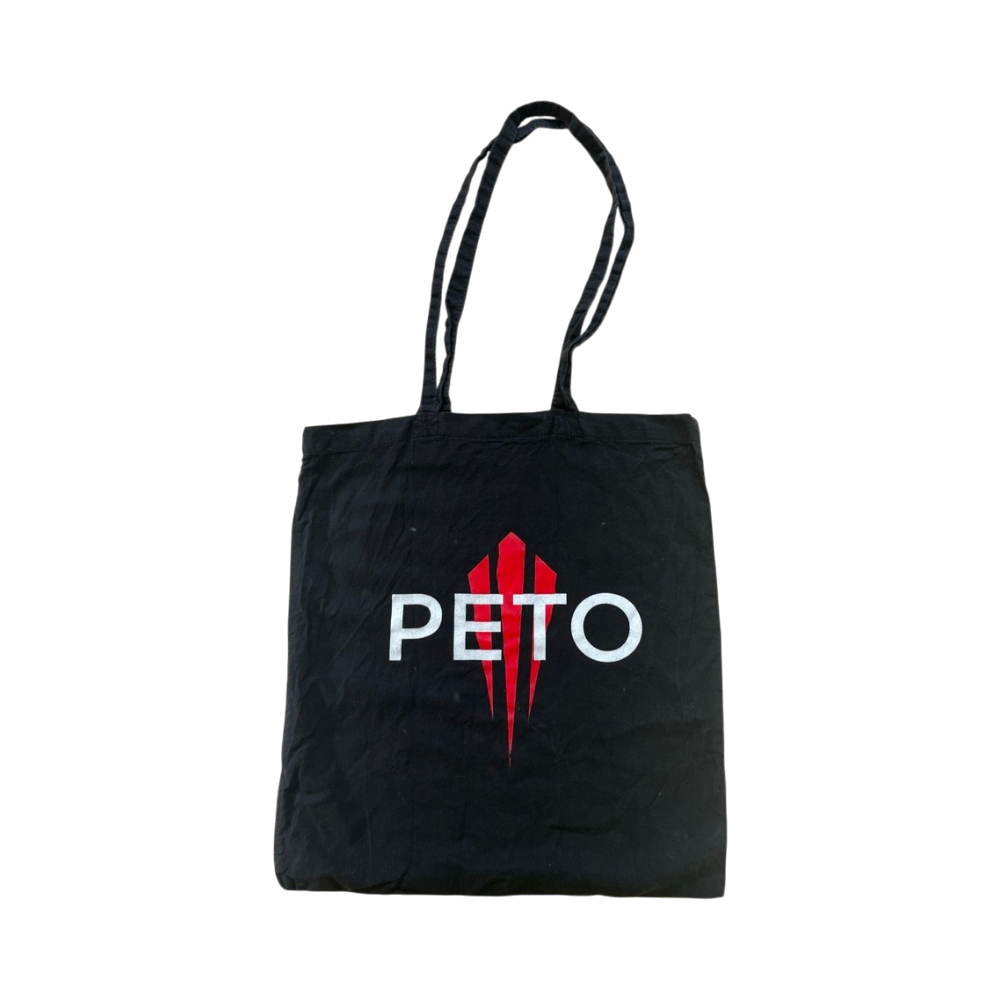 Kevyt musta kangaskassi, punainen ja valkoinen Peto printti edessä.