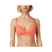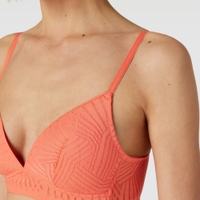 Beautiful coral/orange color with subtle textured pattern. A great choice if you prefer minimal, modern lingerie that feels soft and natural on the body.
