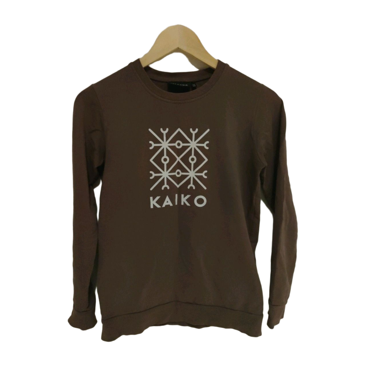Kaikon ruskea college. Koko vastaa xs/s kokoa naisella. Siisti kuntoinen, ei näy moitittavaa. Pesu jää ostajalle, koska paita on suoraan kaapista.
