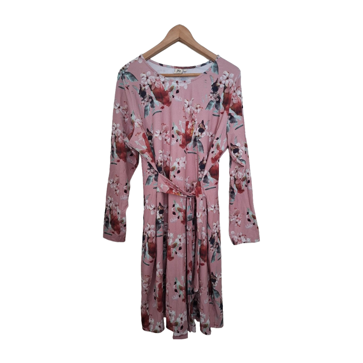 Vain kerran käytetty Kaikon mekko. XL. Kiinteä vyö, jonka voi solmia joko eteen tai taakse.