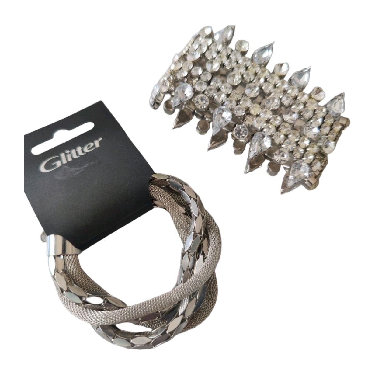 2 kpl Glitterin uusia rannekoruja. Molemmat käyttämättömiä. Toisesta on irronnut pari timanttia.