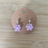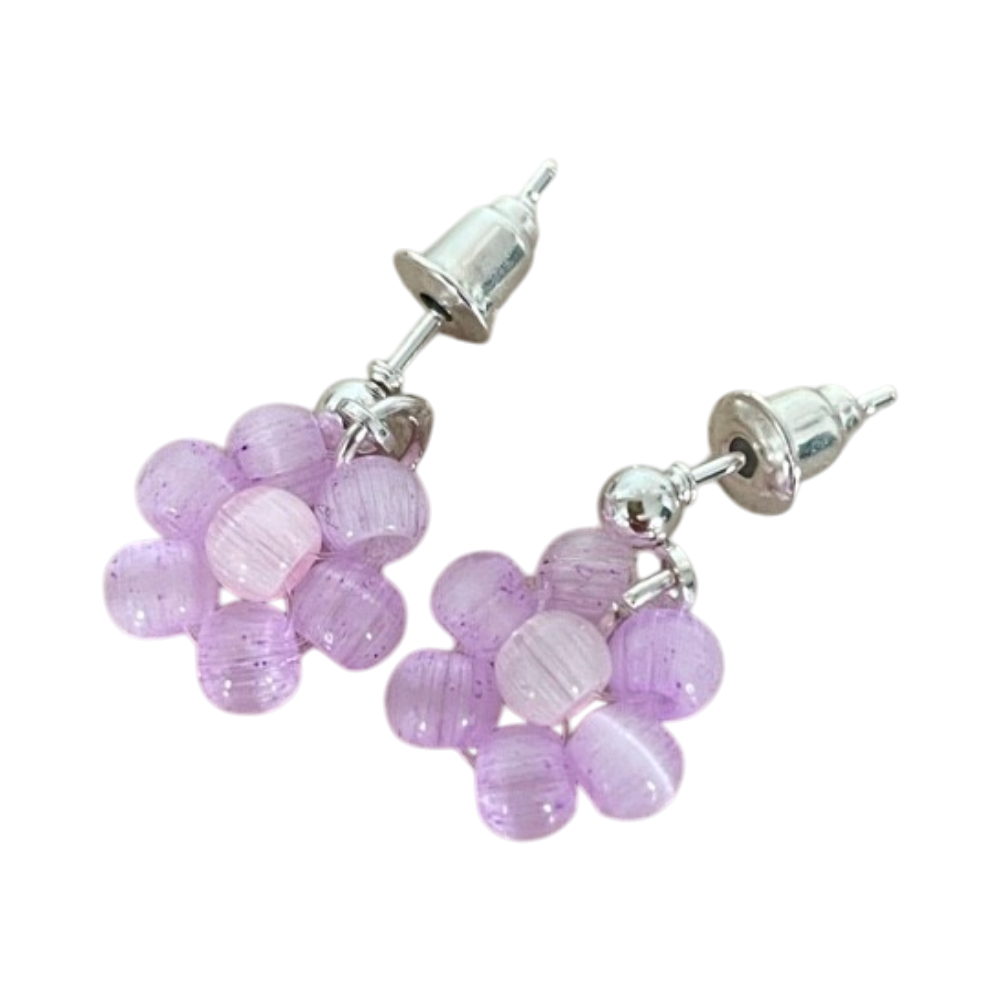Pienet roikkuvat kukkakorvakorut violeteilla kissansilmätyylisillä helmillä🌷