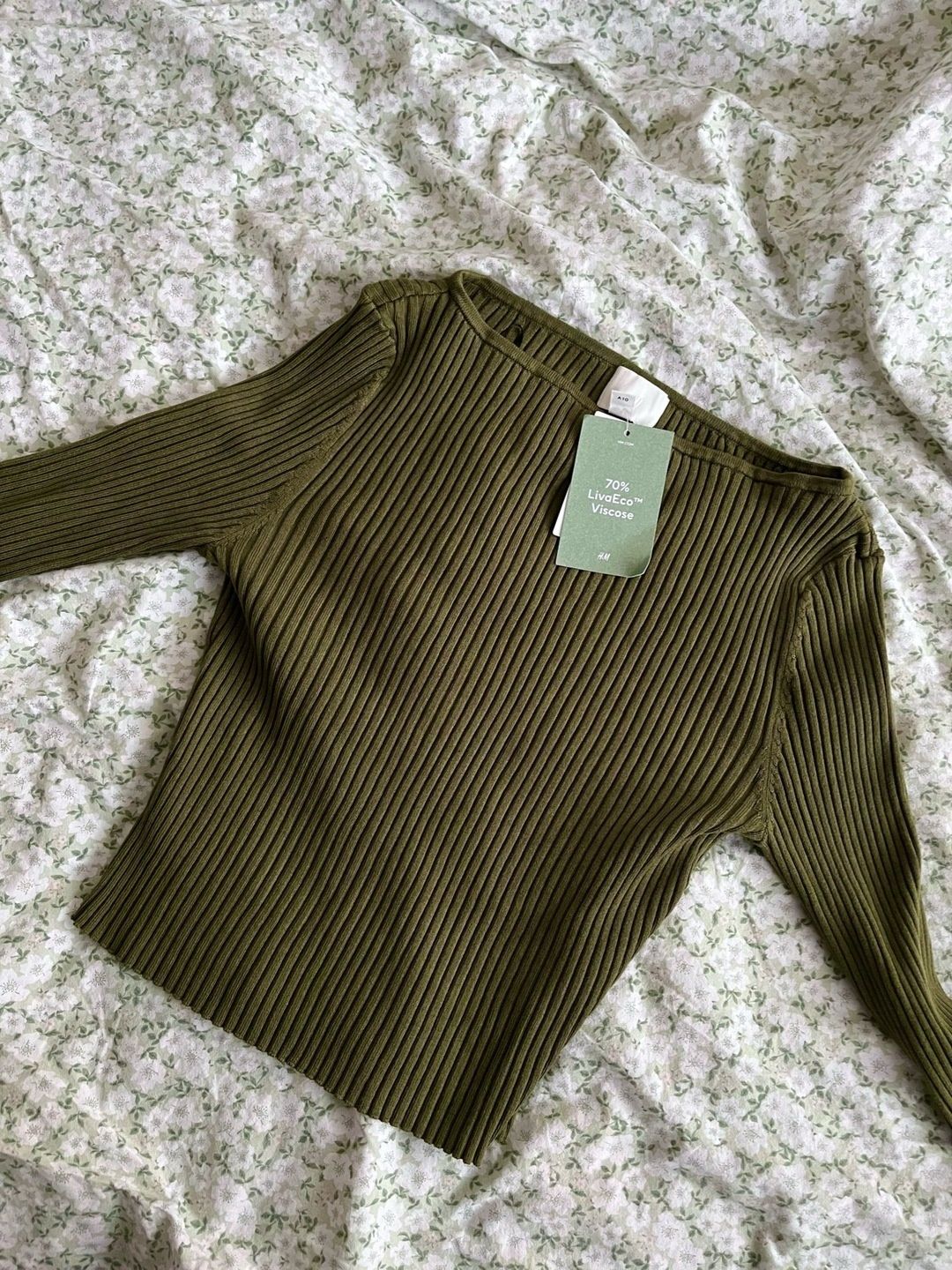 Käyttämätön metsänvihreä paita venepääntiellä. Hihansuissa halkiot. Pehmeää kangasta 💚