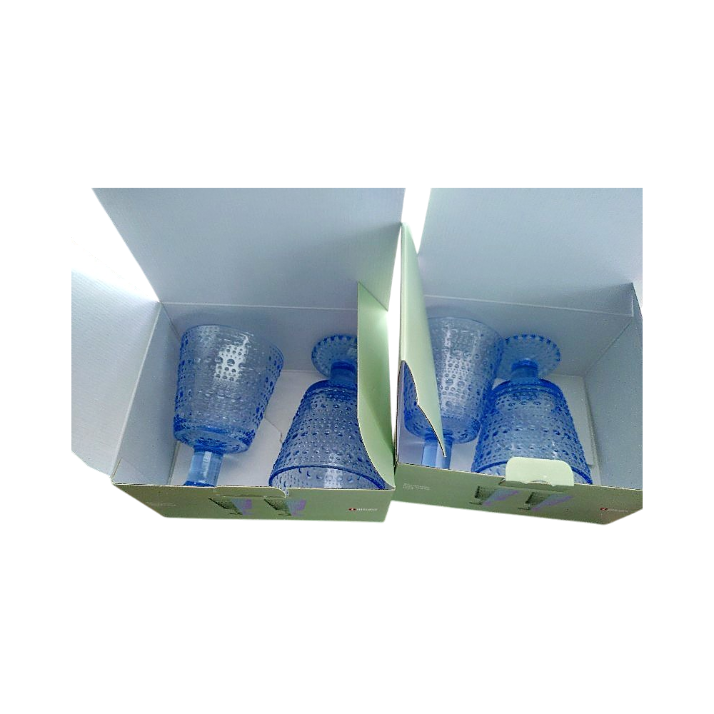 4kpl laseja, toiset käyttöönotto pestyt ja toiset olleet pakettissa. Ei moitteita. Väri veden sininen.