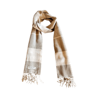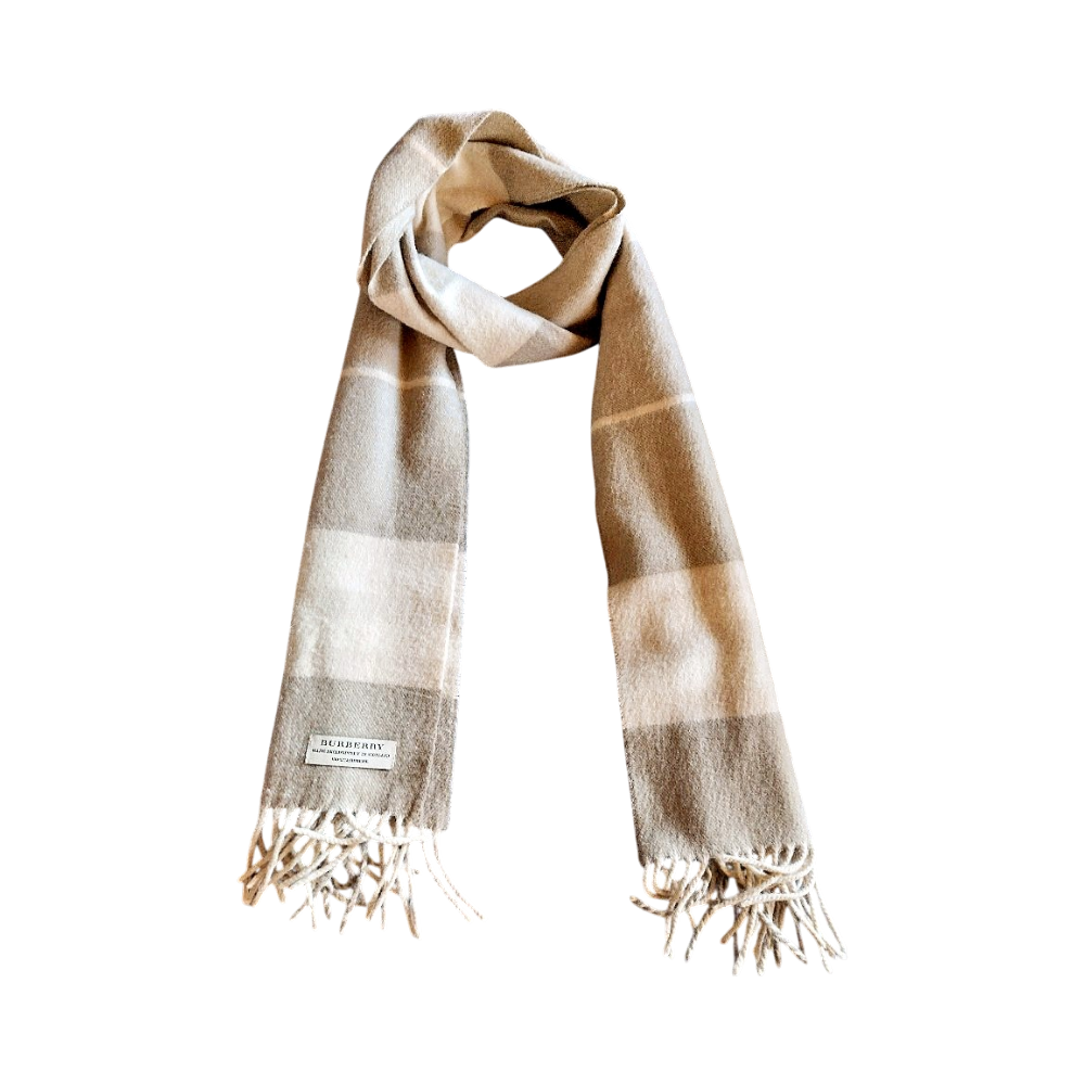 Aito Burberry 100% cashmere Giant Check huivi. Väri beigen ruskea. Leveys 30 cm, pituus 164 cm.