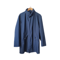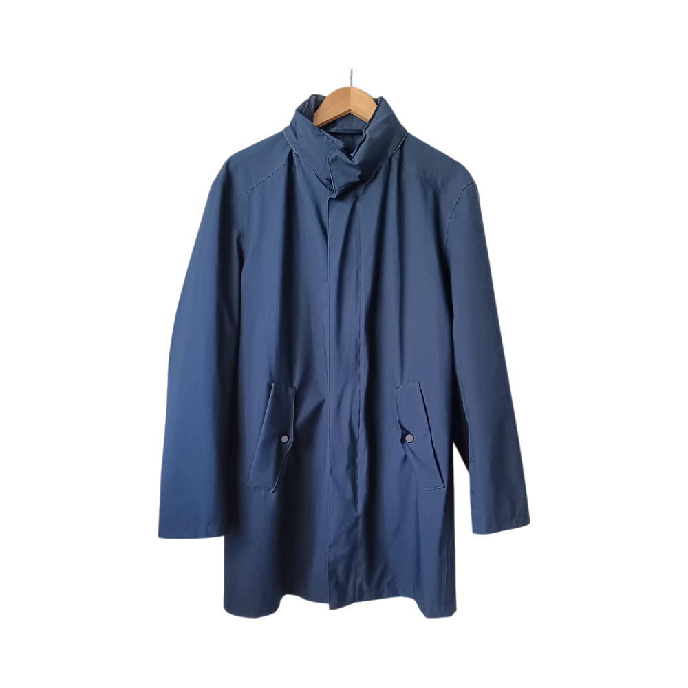 Miesten kevyt veden- ja tuulenpitävä takki, rainseries-mallistoa. Siisti ja käyttämätön. Hyvät taskut ja kauluksen sisässä huppu. Kokomerkintä 50. Vastaa M/L- kokoa. Olkapäästä hihansuuhun 64 cm. Kainalosta kainaloon 113 cm. Niskasta helmaan 94 cm. Takki on tumma, kuvissa värit voivat vaihdella.