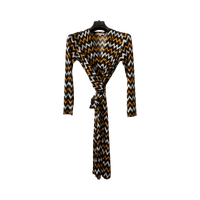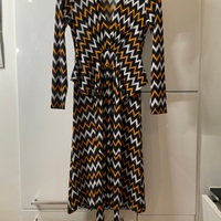 Pitkä v-aukkoinen mekko, solmittava vyö, graafinen kuosi. Koko 4 (vastaa kokoa 36, S). Erittäin venyvä materiaali. Myös nouto Lauttasaaresta. Lisätietoja pyydettäessä.