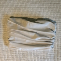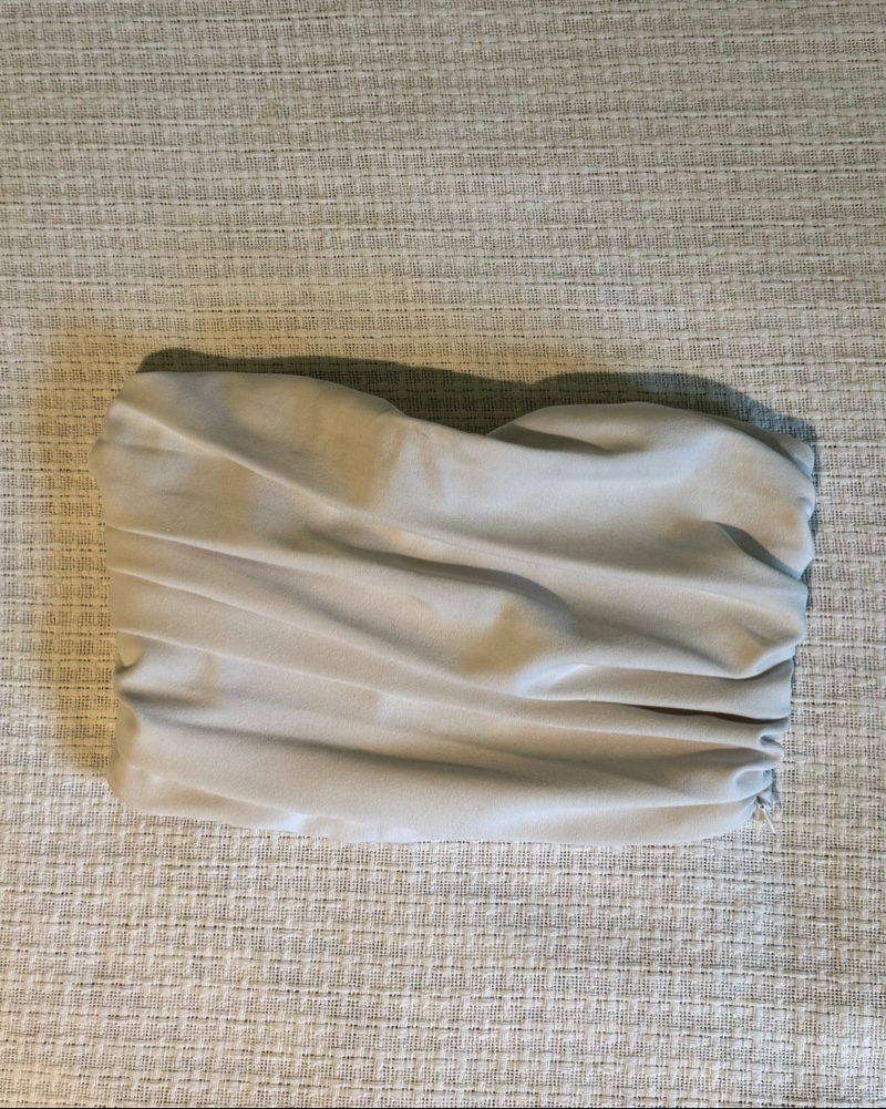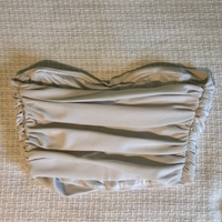 Muutaman kerran käytössä ollut valkoinen bandeau-mallinen cropattu toppi. Joitakin käytön jälkiä näkyy.