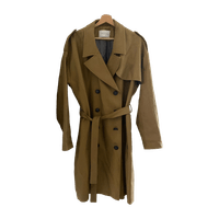 Naisten khakin värinen trenssitakki vyöllä, koko 42. S-L KOKOISELLE