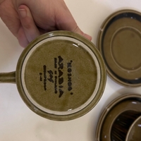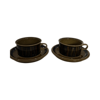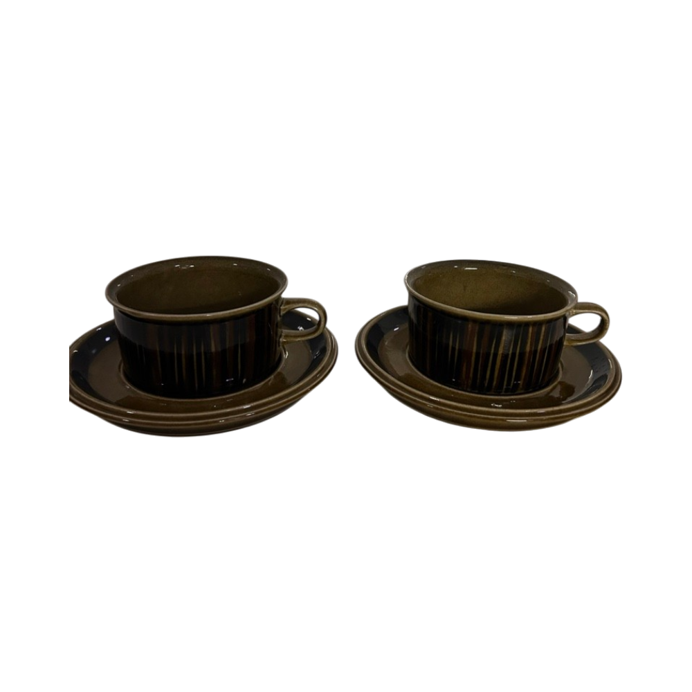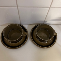 2 kahvikuppia ja lautasia, Arabia Kosmos -sarjaa, hyväkuntoiset.