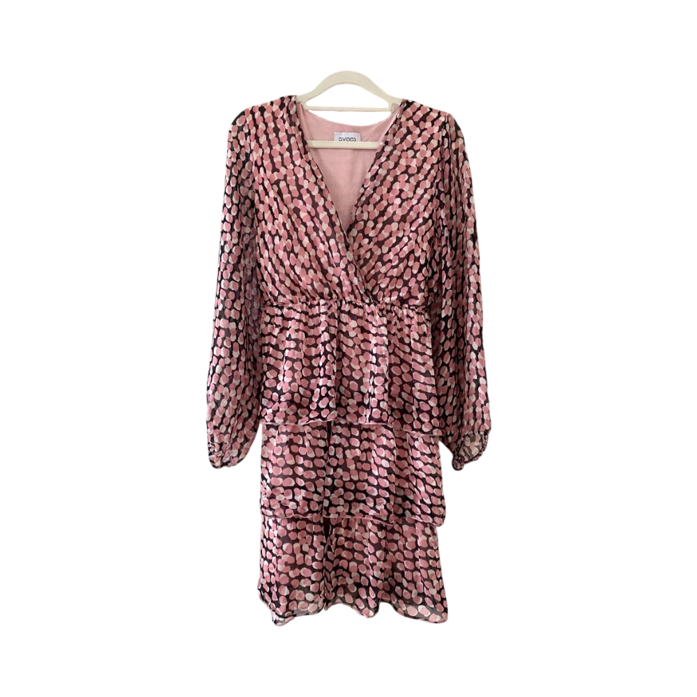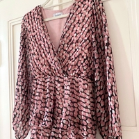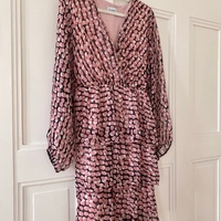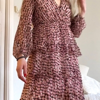 Ihana silkkisekoitteinen mekko. Materiaali laskeutuu kauniisti. Kokolapussa L. Kuvissa 173cm M-kokoisen päällä, sopii tosi hyvin. Vyötärö joustaa. Hyvä kunto, ei moitteita.