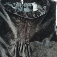 Musta velourmekko. Mekossa pieni kaulus ja rypytys. Kuvaa vaalennettu yksityiskohtien saamiseksi esiin. Takana vetoketju,vuoritettu.